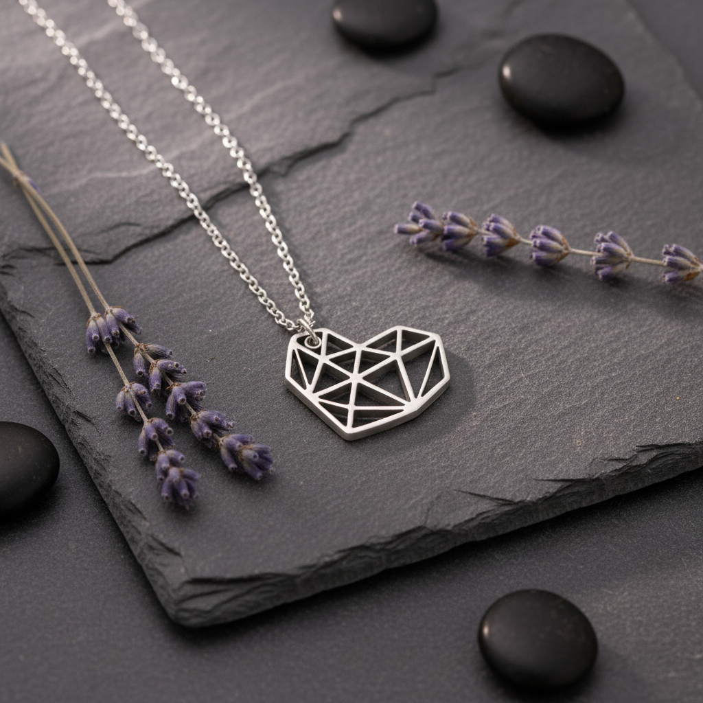 Its fractured geometry draws from ancient ice formations shaped over centuries: sharp lines softened by time, strength concealed beneath clarity. Suspended like frozen light, the heart becomes a symbol of resilience — emotion refined into structure.